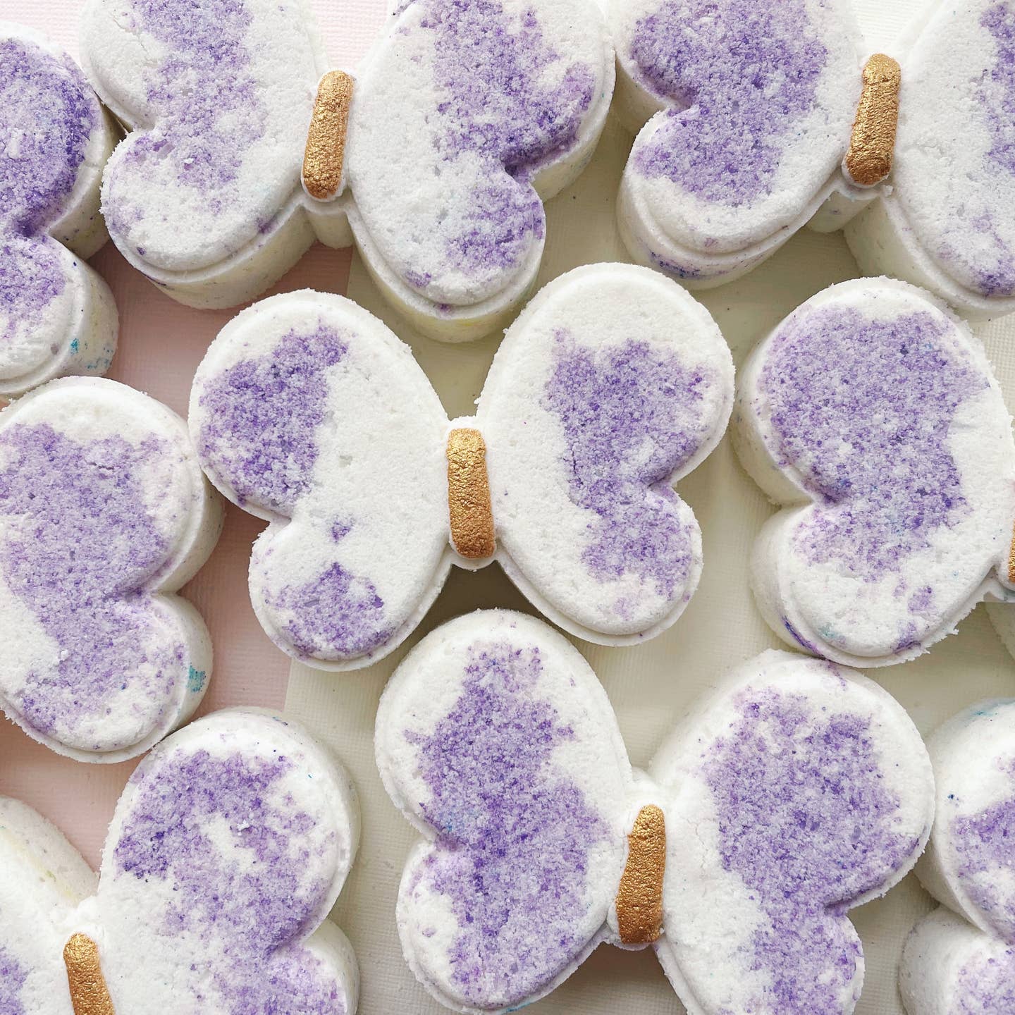 This butterfly bath bomb is filled with fun colors and is scented in lavender. Baking soda, citric acid, kaolin clay, cream of tartar, epsom salt, powdered buttermilk, sweet almond oil, coconut oil, slsa, poly80, mica, hot pink colorant, lavender e.o. Individually wrapped in shrink wrap and labeled with clear sticker.