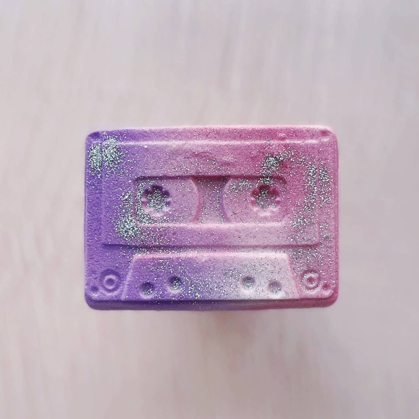90's baby! You will love these adorable cassette tapes, filled with fun colors and adorned with silver glitter! Baking soda, citric acid, kaolin clay, cream of tartar, epsom salt, powdered buttermilk, sweet almond oil, coconut oil, slsa, poly80, mica, hot pink colorant, eco glitter, f.o. Individually wrapped in shrink wrap and labeled with clear sticker.