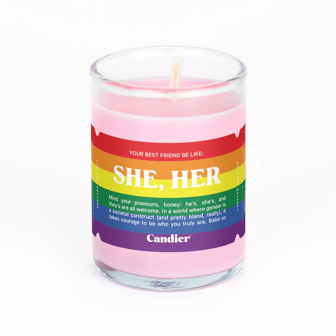 3.25 oz. The cutest damn MINI candle. And it smells good, too. Mind your pronouns, honey: he’s, she’s, and they’s are all welcome. In a world where gender is a societal construct (and pretty bland, really), it takes courage to be who you truly are, Babe xo