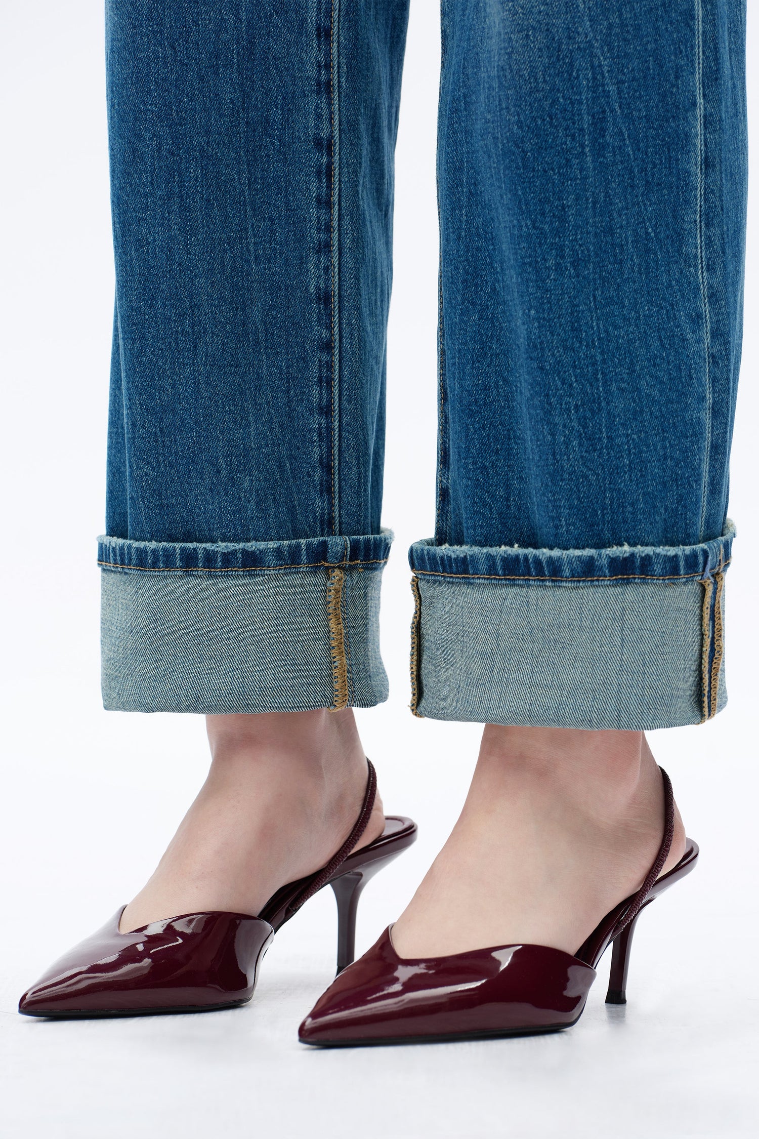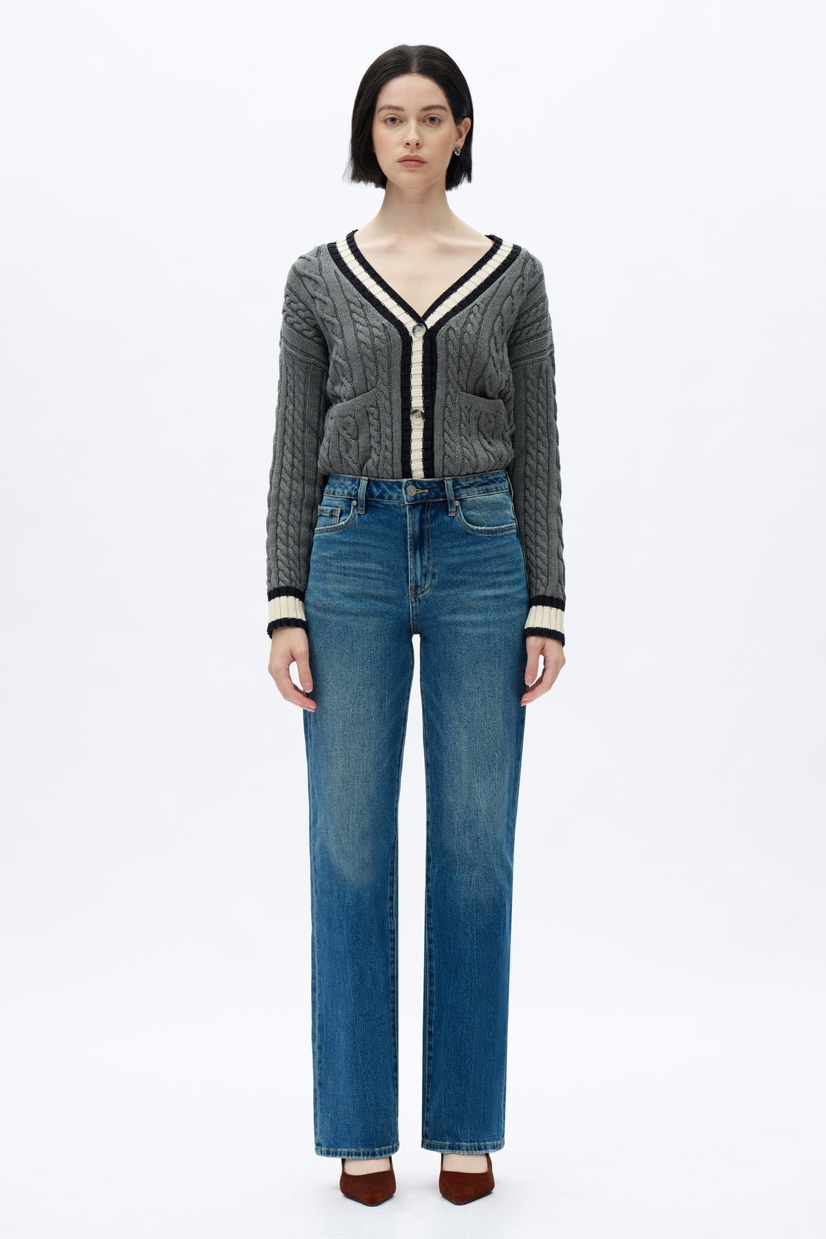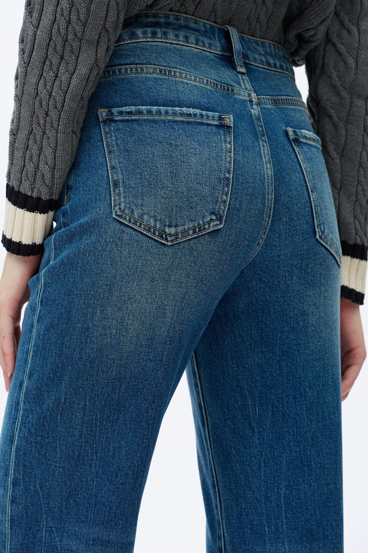 This high-rise, straight-leg jeans offer a flattering fit and timeless style. Made from premium, comfortable denim, It's a wardrobe essential for a sleek or casual look.