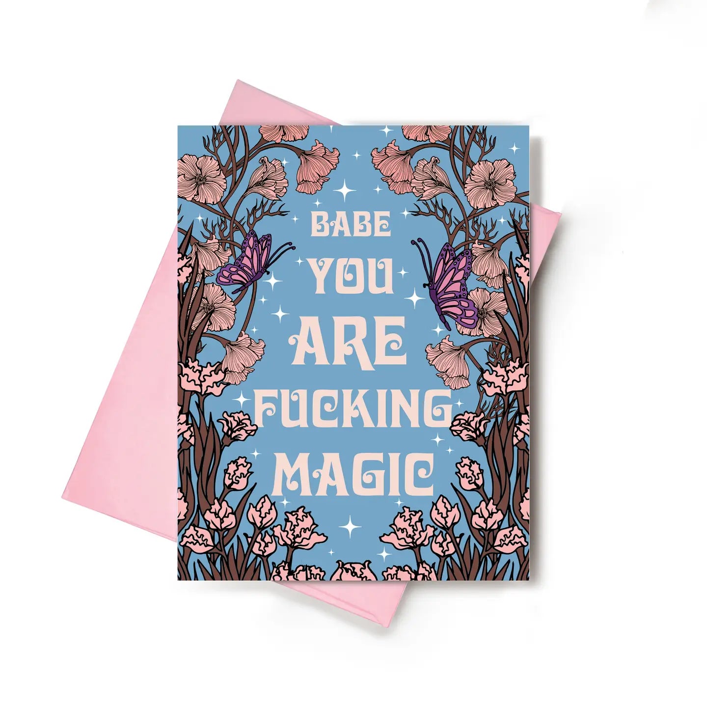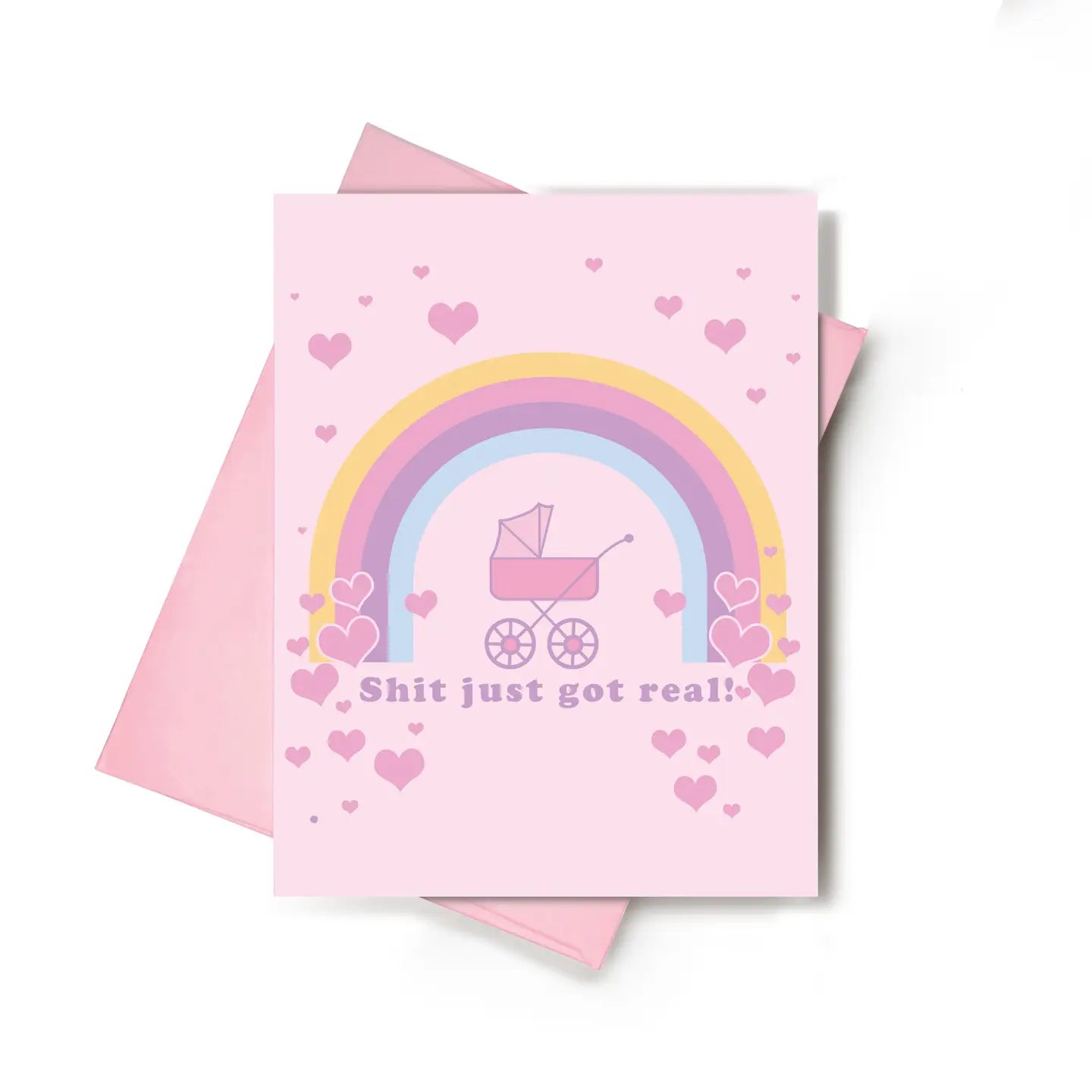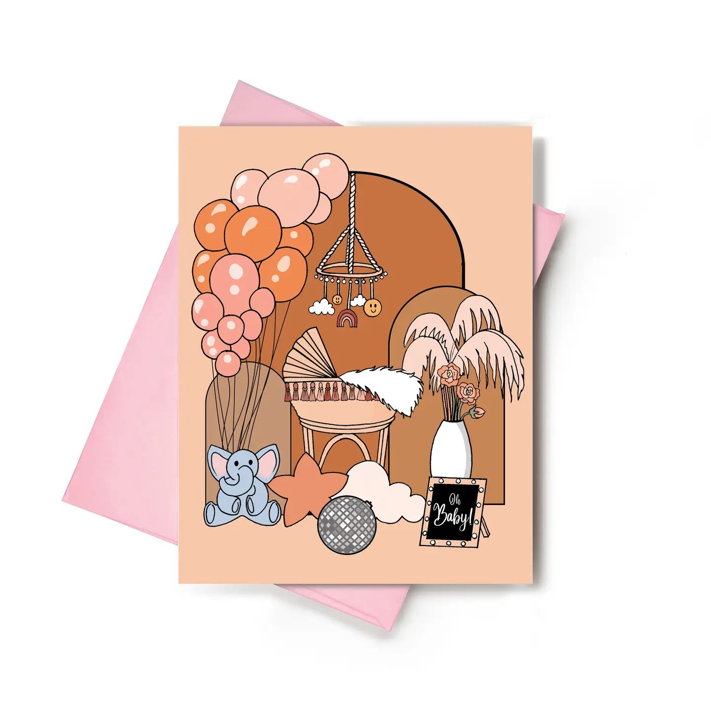 *Single blank interior greeting card. *Card size: A2 4.25"x5.5" *Pink envelope size: 4.375"x5.75" *Protected in a clear cello cover *Designed and printed in Los Angeles, California