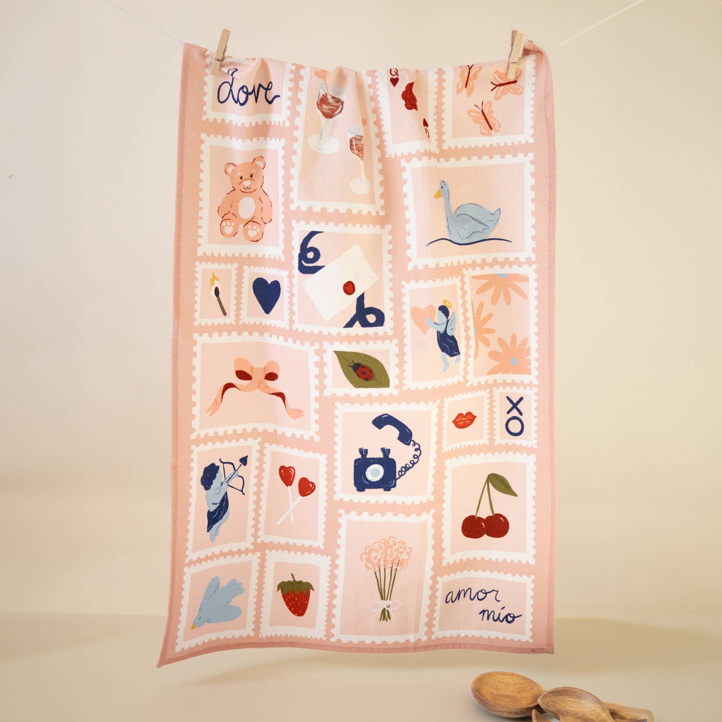 - 100% Cotton Crepe - Corner Hang Loop - Machine wash; tumble dry - Individually packed in cello to prevent damage - Approximately 18x25.5" but may vary slightly