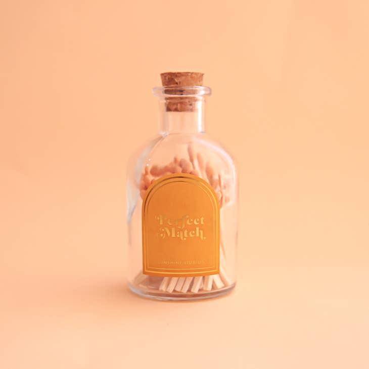 Adorn your mantle or bedside table with our very own sunshine studio matches. These aren't your ordinary matches and come in unique color-ways suitable for any space. thoughtfully designed with easy to remove matches, simply turn over the jar and give it a shake. Dimensions | 4.5" x 2.25". 50 matches.