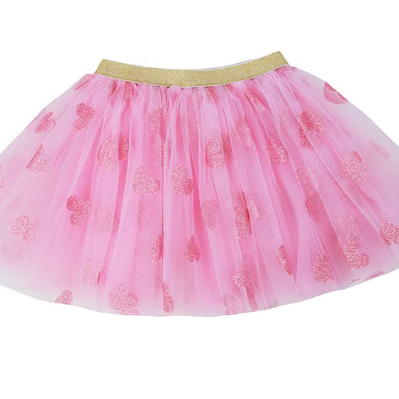 Introducing our Pink Glitter Heart Tutu. This tutu will easily become a staple as it is on one of our best selling pink colors with the twist of the glitter hearts that any child would love! Create an outfit and make it your own!