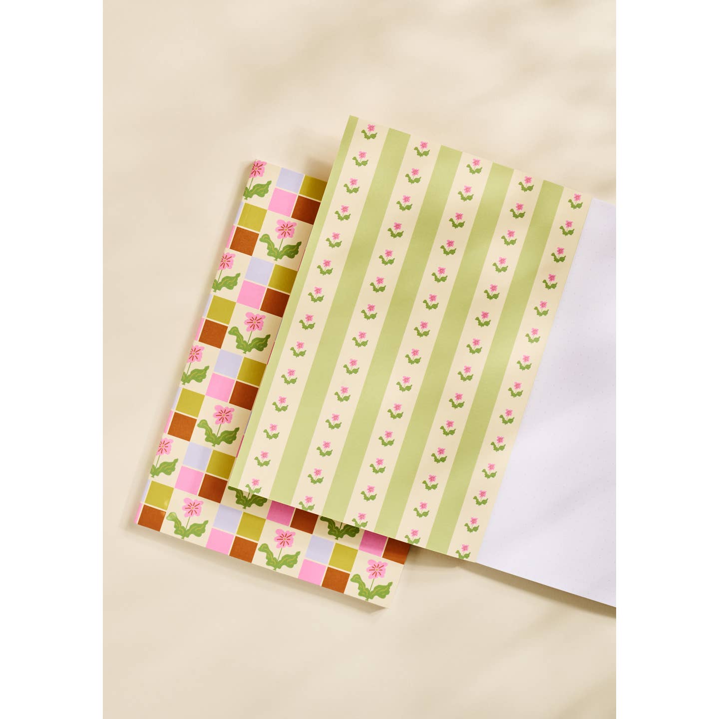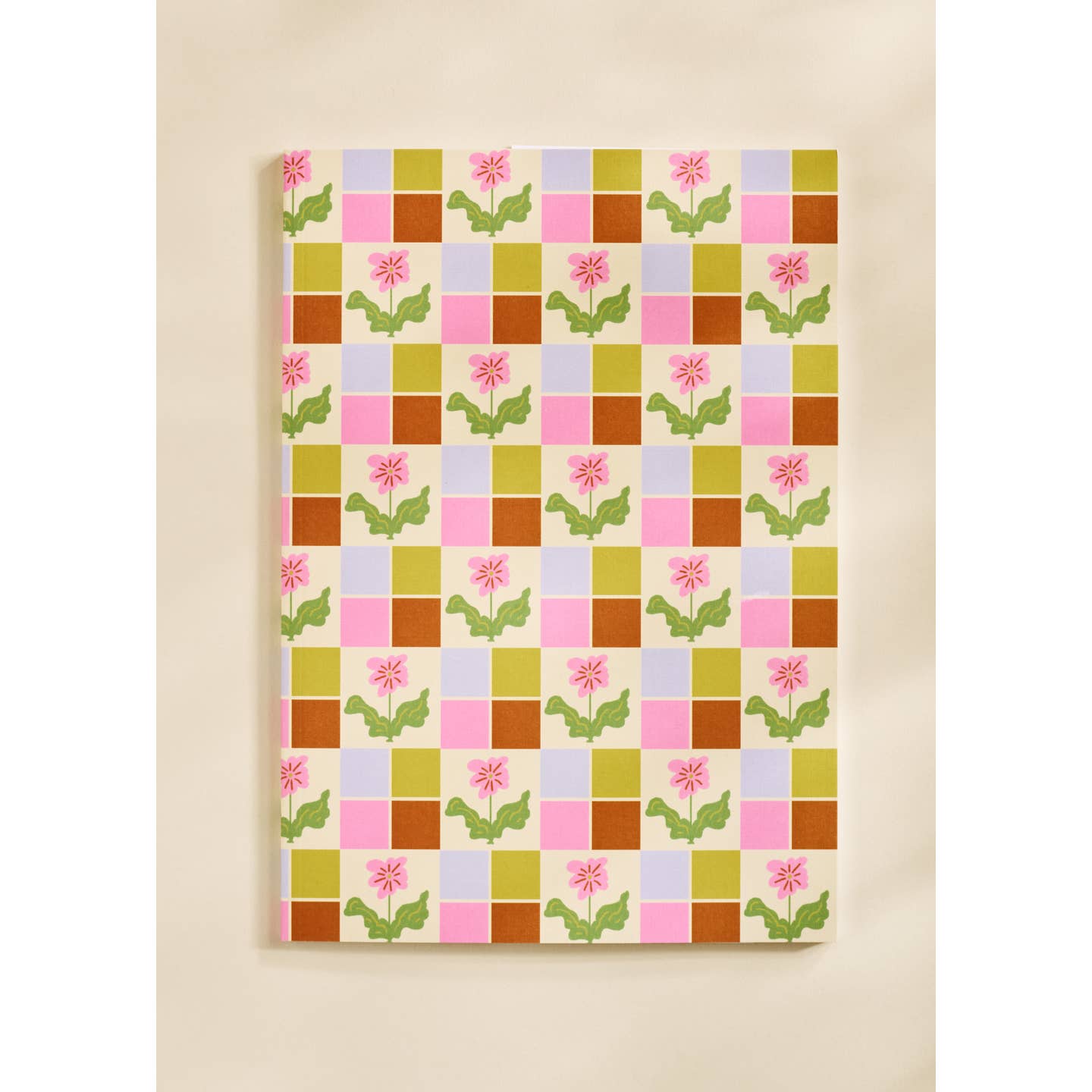 Sweet and cheerful, this dot grid notebook features a vintage-inspired tile pattern with pops of pink flowers and playful colors throughout. It’s bright, nostalgic, and ready to bring a little joy to your desk. The linen-textured cover adds a luxe feel, and inside you’ll find 80 dot grid pages for lists, journaling, or doodles. Details: Size: 6.5" x 9.25" 80 dot grid pages Linen textured 110# paper cover Square corners Perfect bound Made in the USA