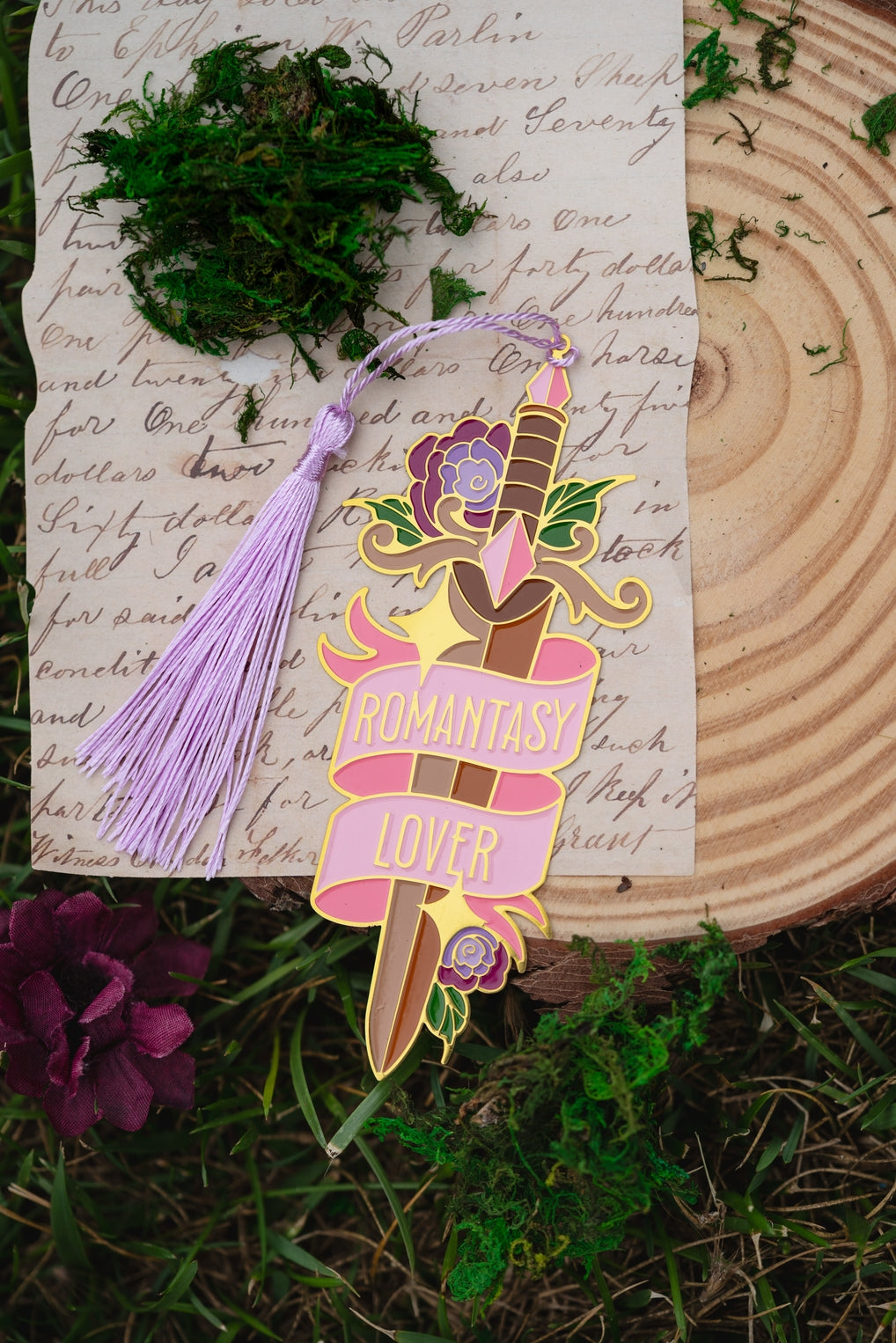 In your bookish era? Same! This gorgeous Romantasy Lover Sword metal bookmark showcases a beautiful floral sword design with the text "Romantasy Lover". The perfect way to mark your page for anyone who loves reading and books!