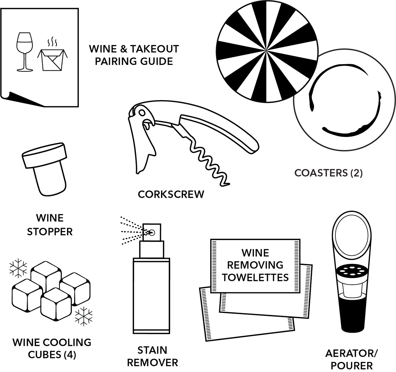 Say “yes way” to our rosé-inspired Wine Kit. With Furoshiki-inspired packaging, this peach-perfect bow box is a great way to celebrate warm climes ahead. Contains 11 must-haves: aerator/pourer, gold-tone wine stopper, gold-tone corkscrew, coasters (2), stain removing spray, "Last Glass/Keep Pouring" decision coin, wine removing towelettes (3), wine chilling cubes (4), and a Wine & Takeout pairing guide.