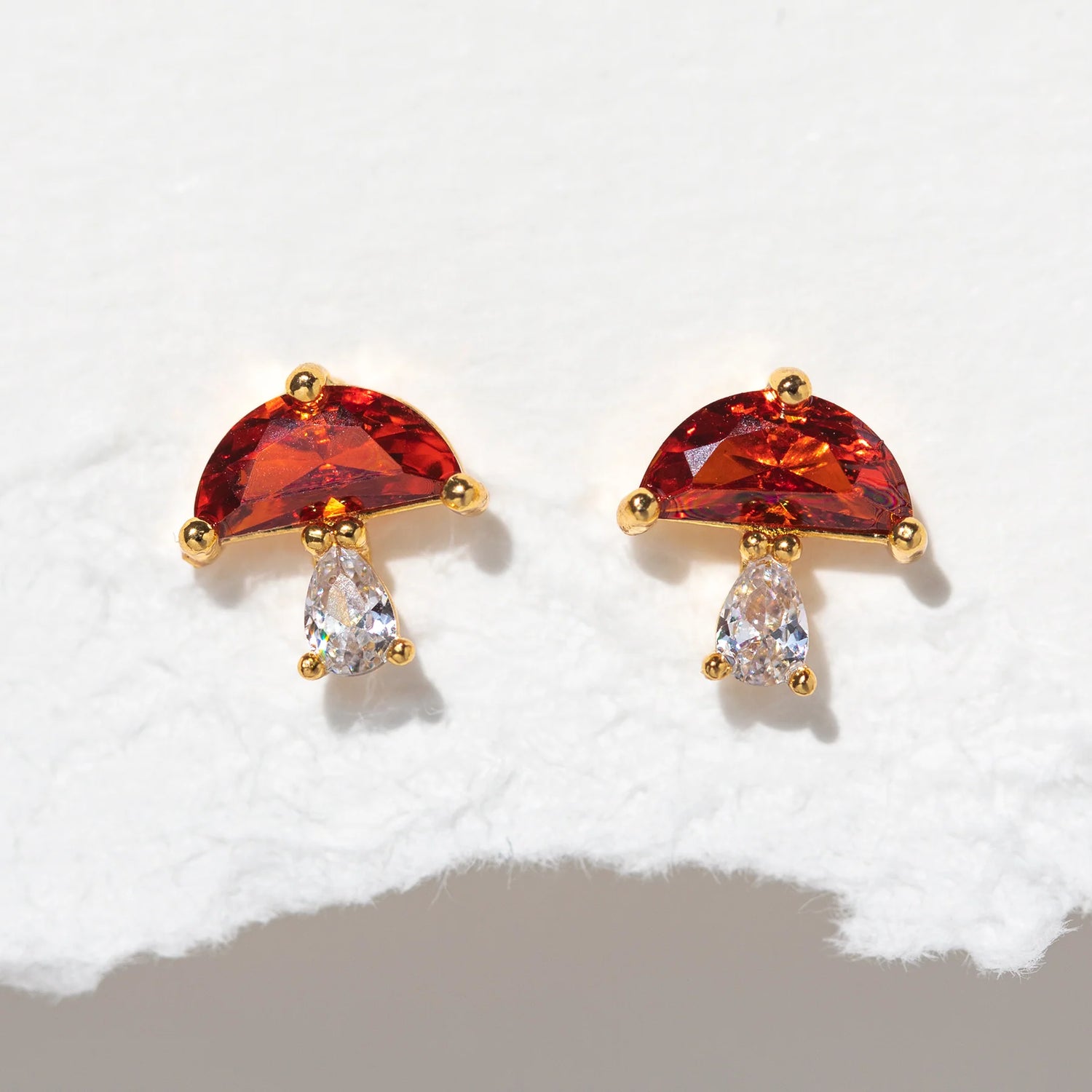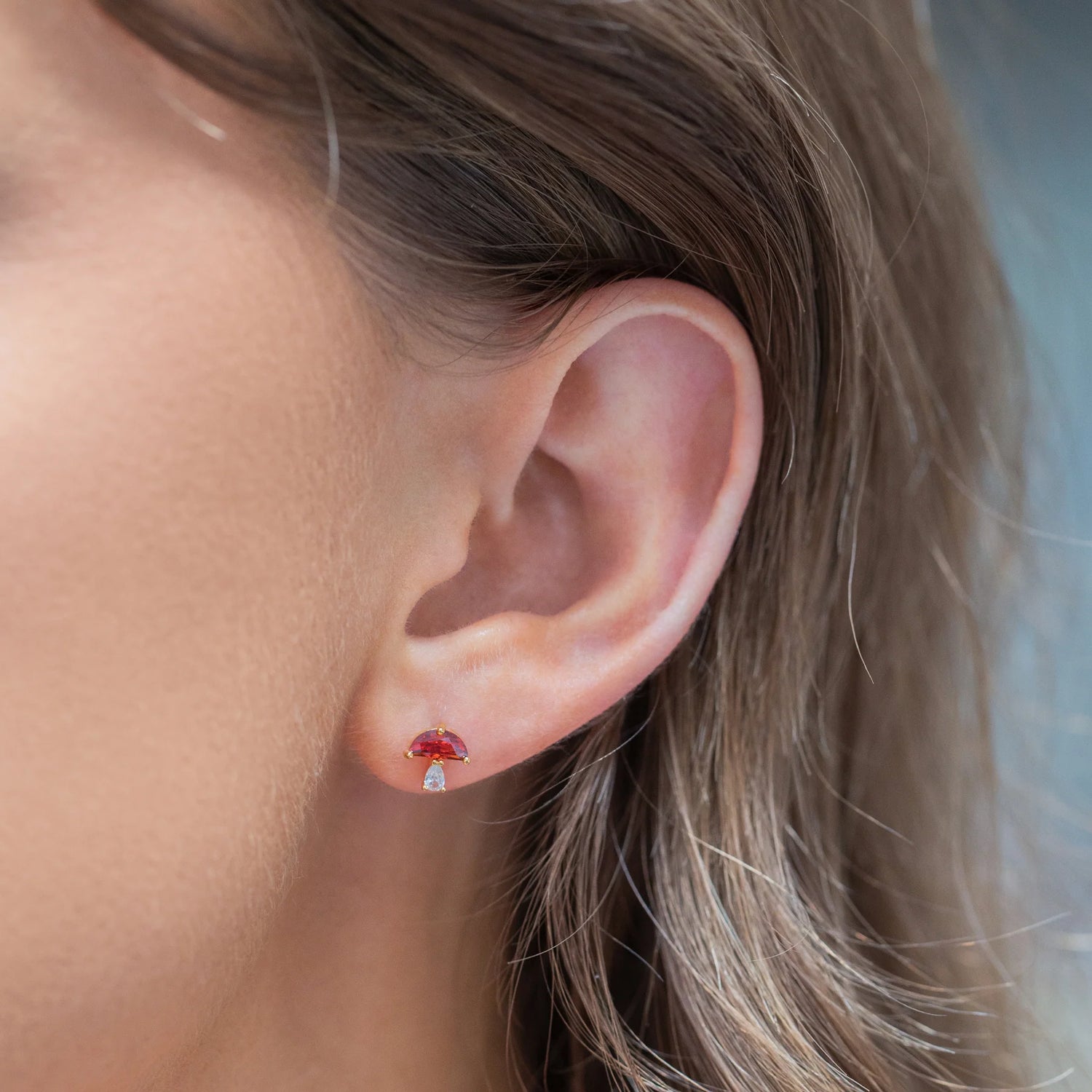Step into the wilderness with our Shroomie Studs! These playful earrings feature a fiery red stone atop a dazzling CZ. These are perfect for everyday wear or for a night out!