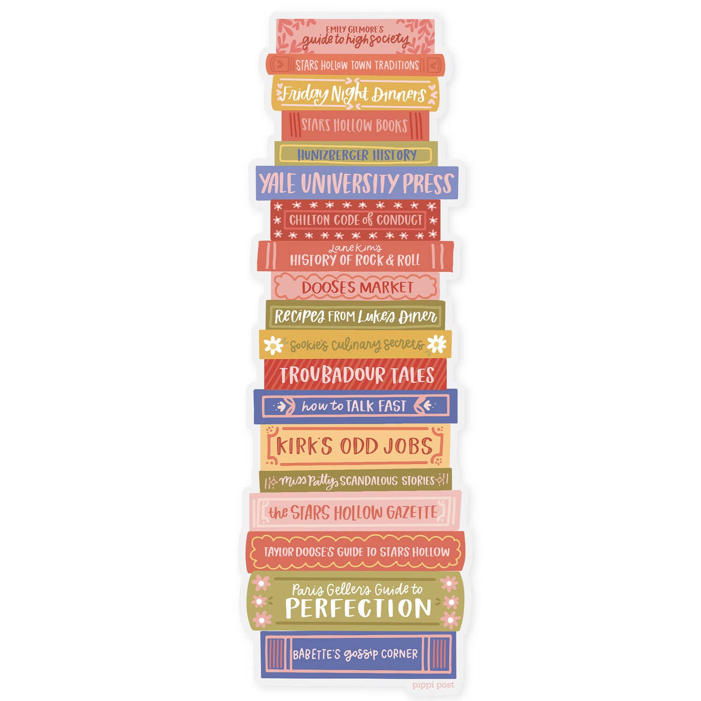 Channel your inner bookworm with this Stars Hollow Book Stack Transparent Bookmark! Featuring hand-illustrated spine titles inspired by iconic Gilmore Girls moments—from Friday Night Dinners to Kirk’s Odd Jobs—this clear bookmark is perfect for fans of Rory, Lorelai, and all things cozy and literary. Lightweight and durable, it’s a dreamy companion for your current read, planner, or even your Kindle case. A sweet gift for book lovers, Gilmore Girls fans, or anyone who thrives on a little small-town charm. Add it to your stationery stash or wrap it up for your reading buddy’s next birthday or book club win. Material: Acetate Size: 2×6.5"