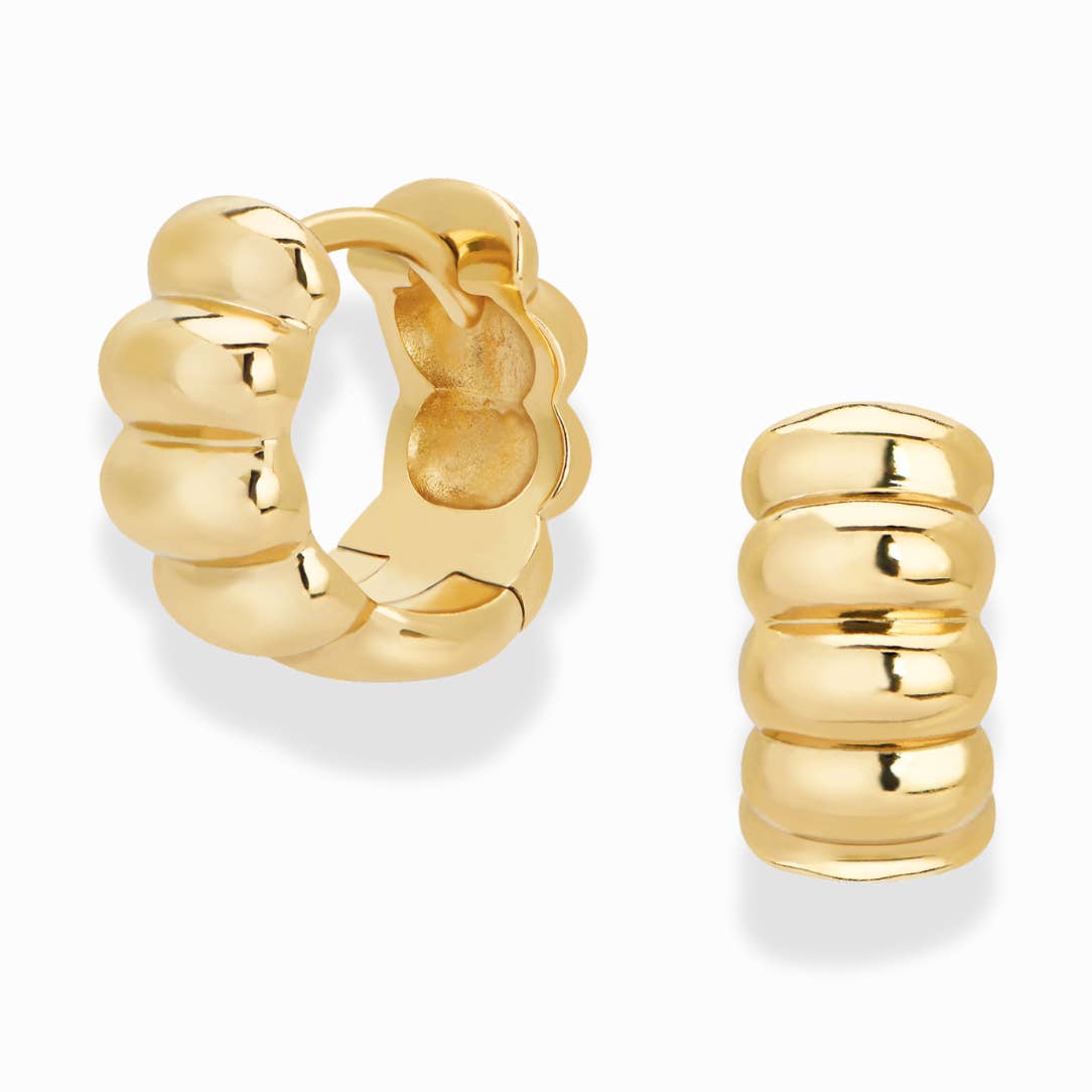 With a sleek and minimalist aesthetic, the Sylvie Huggies are perfect for adding an everyday, unique touch to any outfit. - 11mm outer diameter - 8mm inner diameter - Gold plate over brass - Nickel- and lead-free
