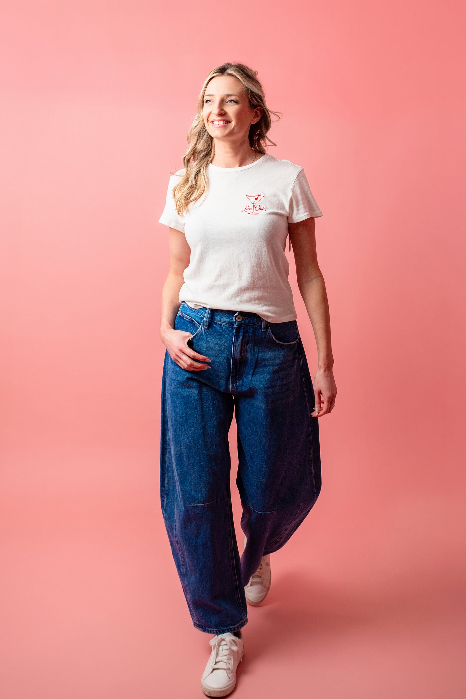 Your new fave tee is here: crafted from soft 100% cotton jersey, this short sleeve crew neck brings a playful touch with an embroidered martini glass and “love club” on the front. Effortlessly cool with a fit that’s perfectly in-between relaxed and fitted, it can be worn year-round.
